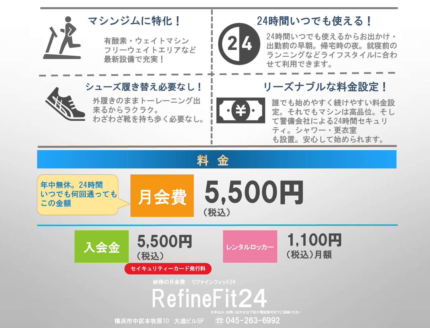 本牧で設備の整ったジム 月額5,500円でフィットネスが24時間いつでも通い放題!